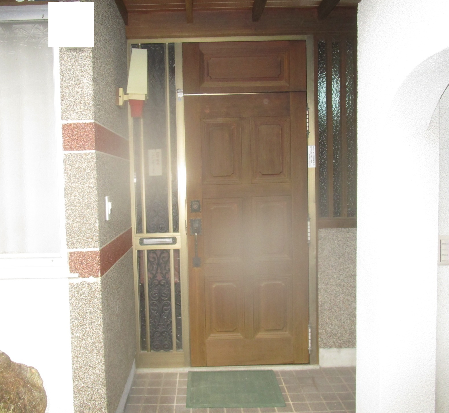 木製のドアで色あせと施錠不具合により玄関リシェントドアに改修